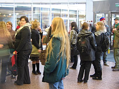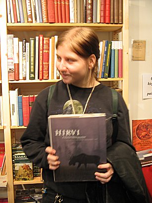 | Ovella laskettiin läsnäolijat, maksettiin sisäänpääsystä ja hihkuttiin innosta. Heti portin sisäpuolella porukka hajaantui. Koska aikaa oli vain messujen sulkeutumiseen asti kello kuuteen, kaikilla oli kiire tutkimaan antia. Meidän pieni porukkamme lähti vanhasta tottumuksesta tutkimaan antikvaarisia kirjamessuja. |